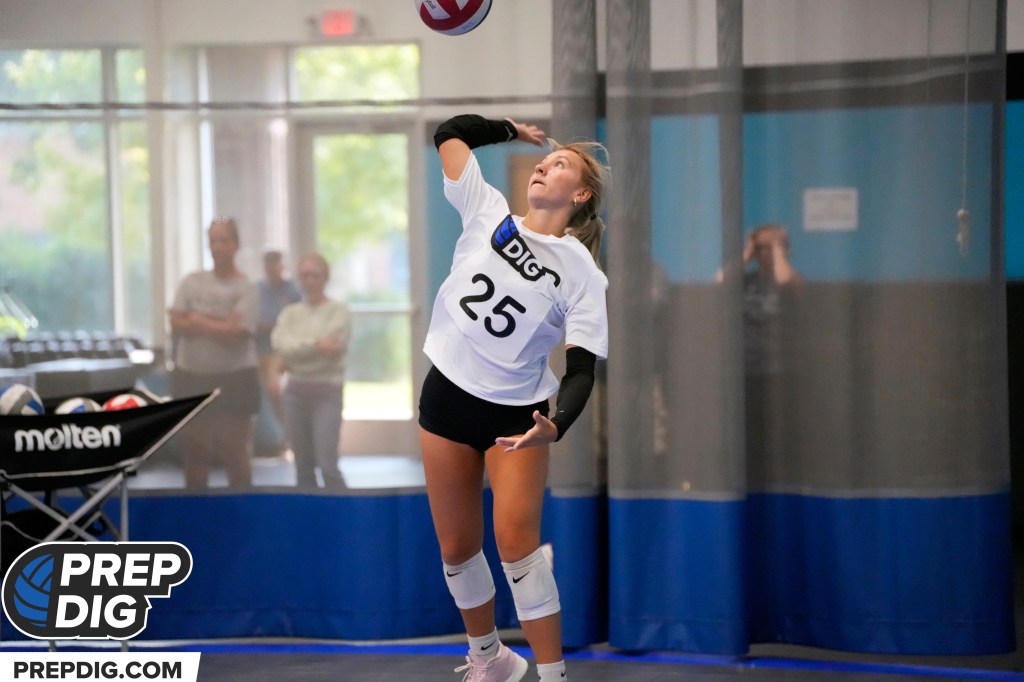 Drinkall was consistent in keeping space between her platform and her body, and she was always communicating with those around her. She does a great job cushioning a hard-driven serve to keep it on her side of the net. Drinkall is confident and relaxed in the back row which helps her read hitters and pick up a lot in coverage.