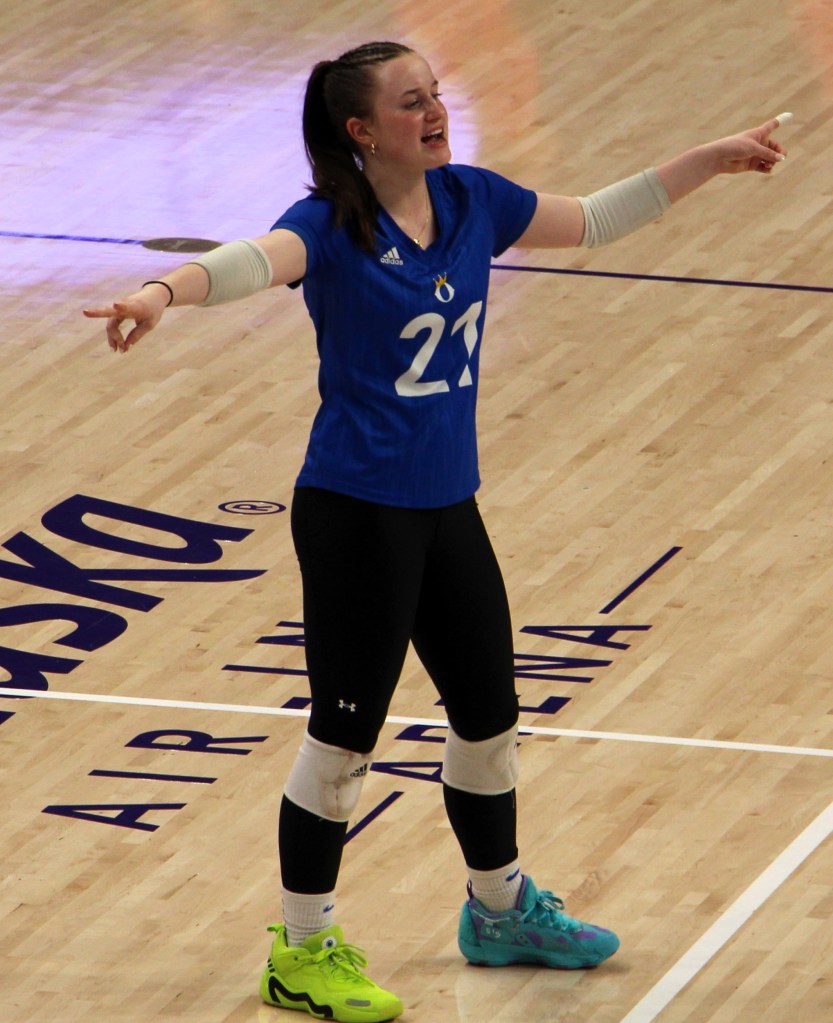 From Kinley- “Grey is a huge part of our back row. From making serve-receive look easy to always making great plays on defense. She also has a consistent tough serve