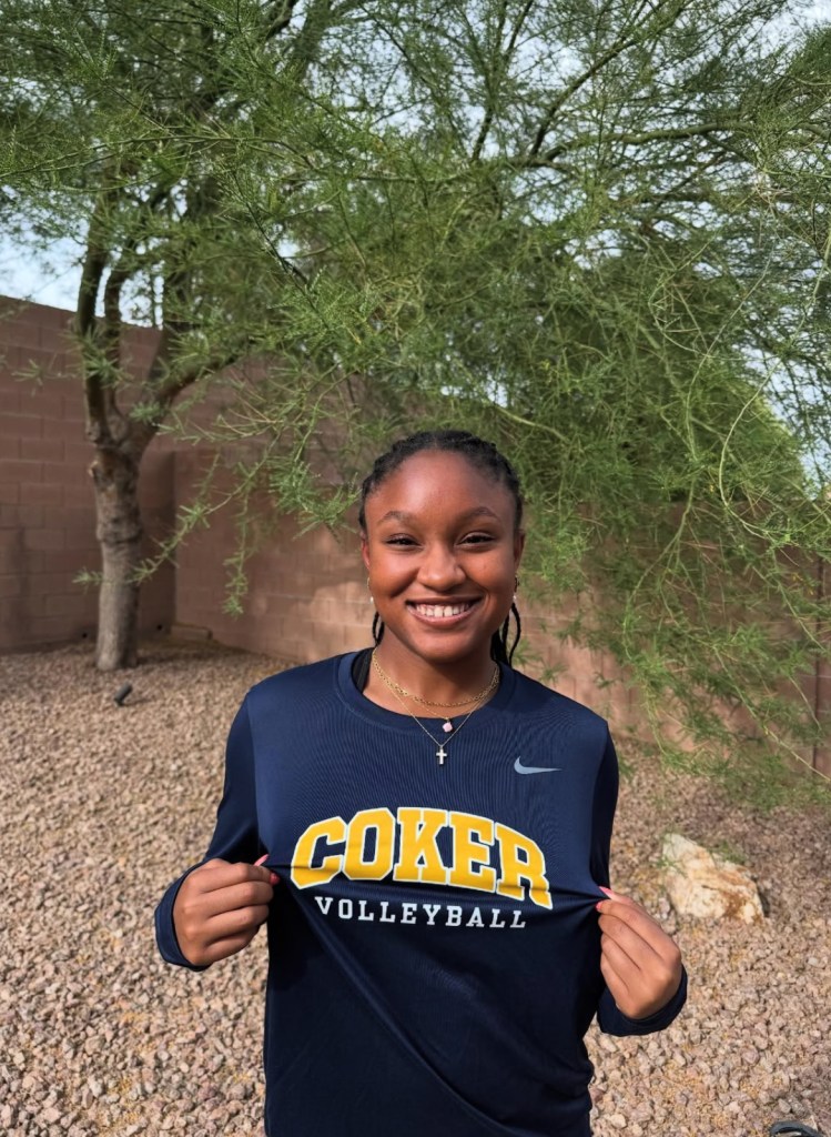 K has been playing volleyball for six years. She has committed to Coker University.